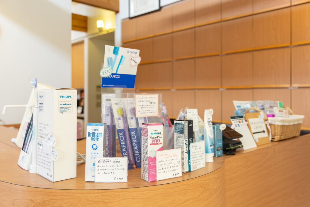 受付ではケアグッズなどの販売を行っています。
