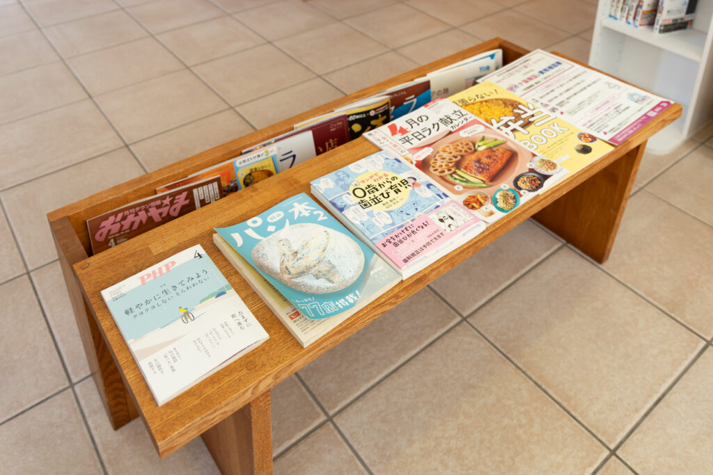 治療に関する資料や漫画や雑誌などを置いています。